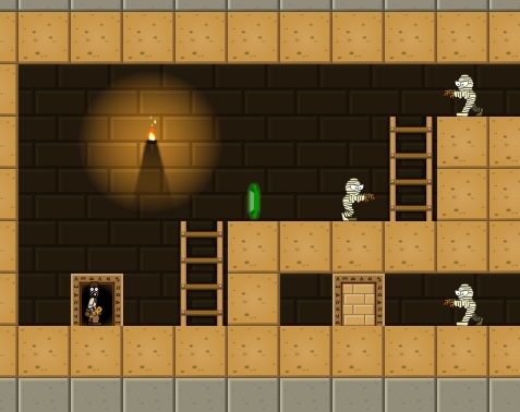 Arcade game Curse Run. Under the great pyramids of Egypt lies the magic ankh of the Evil pharaoh. Use his ankh to defeat the evil mummies. Collect all the emeralds to open the gate that leads to the next adventure!